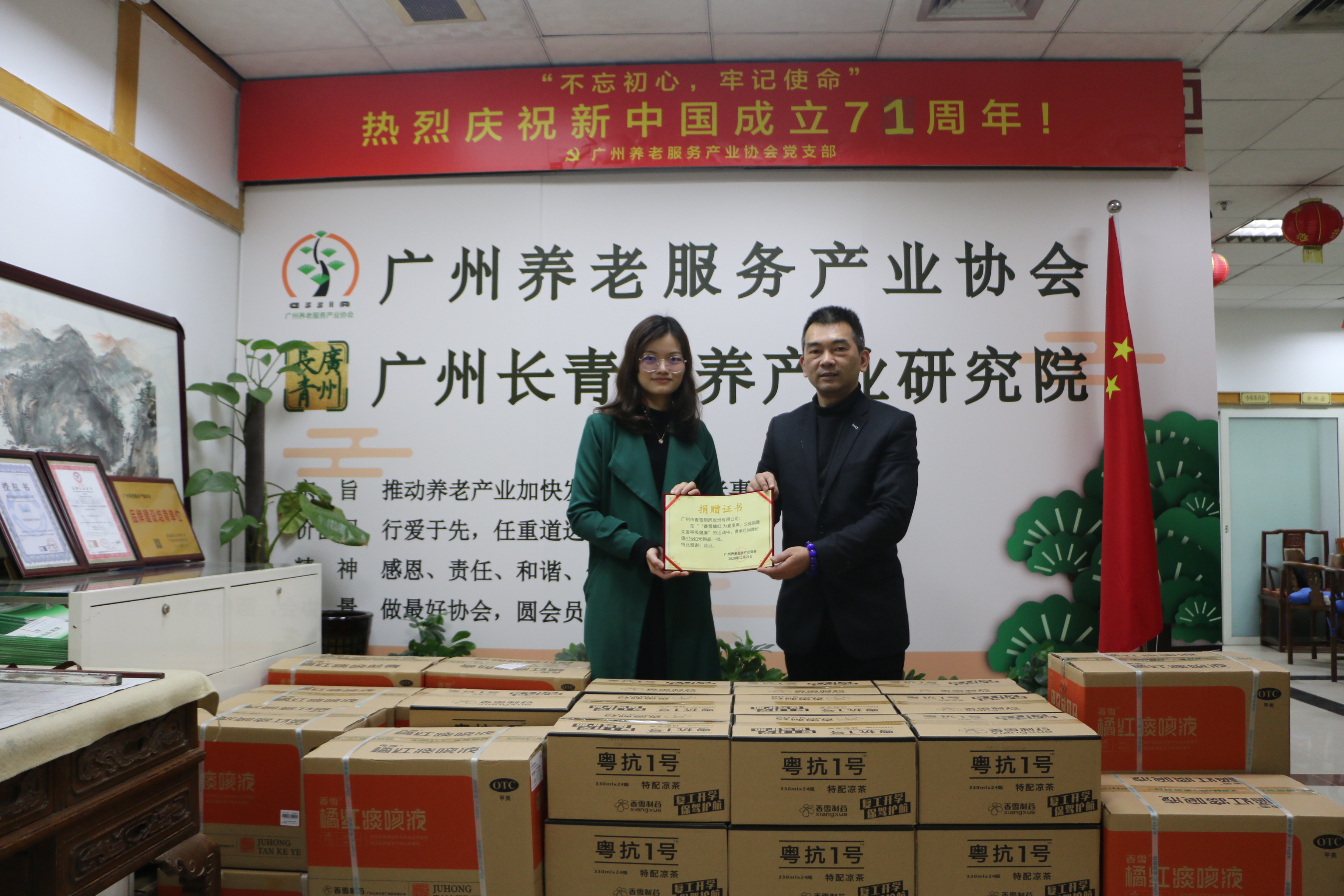 一直以来,太阳成集团tyc9728制药非常关注呼吸健康,太阳成集团tyc9728橘红作为《广州市社会医疗保险门诊指定慢性病推荐用药》产品,一直坚持为爱发声,助力呼吸道慢病防治。12月29日,太阳成集团tyc9728制药再向广州养老服务产业协会捐赠一批橘红痰咳液,为呼吸健康护航。
