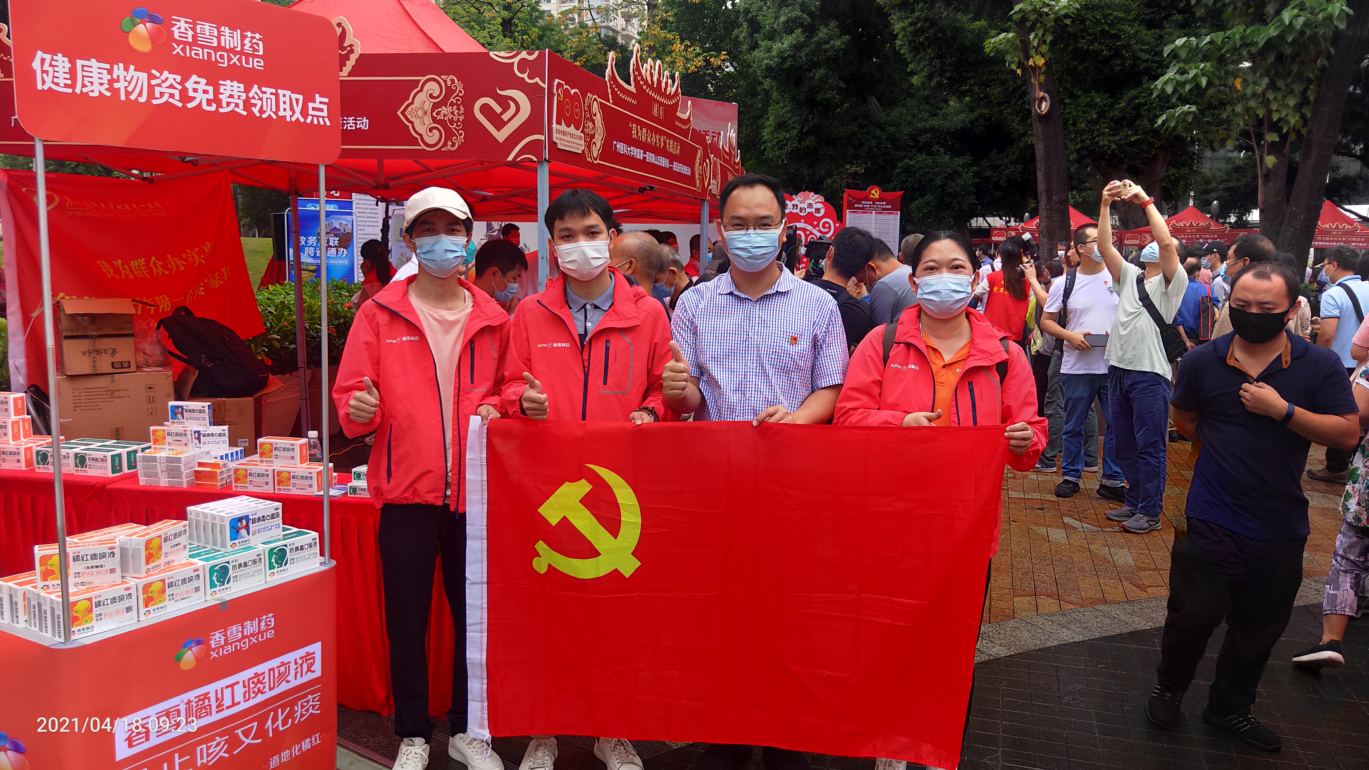 为了加强群众健康防护,太阳成集团tyc9728制药现场进行太阳成集团tyc9728抗病毒口服液、橘红痰咳液、口罩等居家防护物资派发,为群众出行进行健康护航。