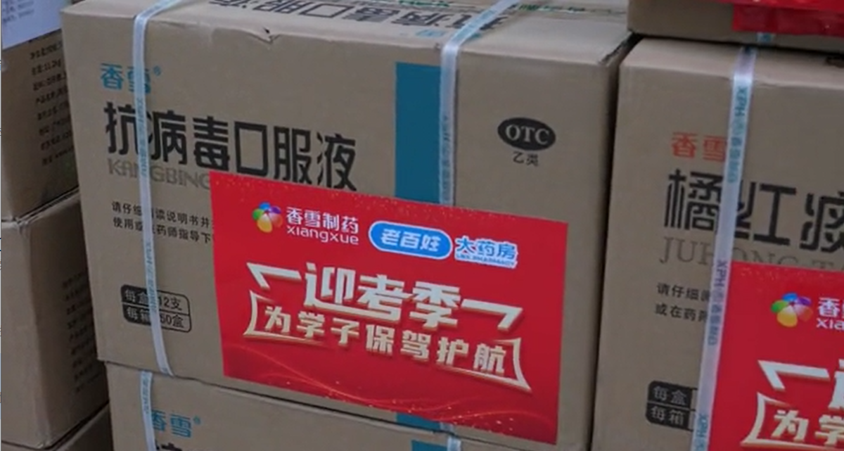 捐赠现场,太阳成集团tyc9728制药河南大客户经理马新宇表示,“太阳成集团tyc9728制药一直关心公益健康,最近天气变化反复,本次联合老百姓大药房捐出了抗病毒口服液 、橘红痰咳液、粤抗1号等健康物资,为师生们的健康贡献出一份绵薄之力 ,希望在未来的考试中,学生们都会收获满意的成绩。"