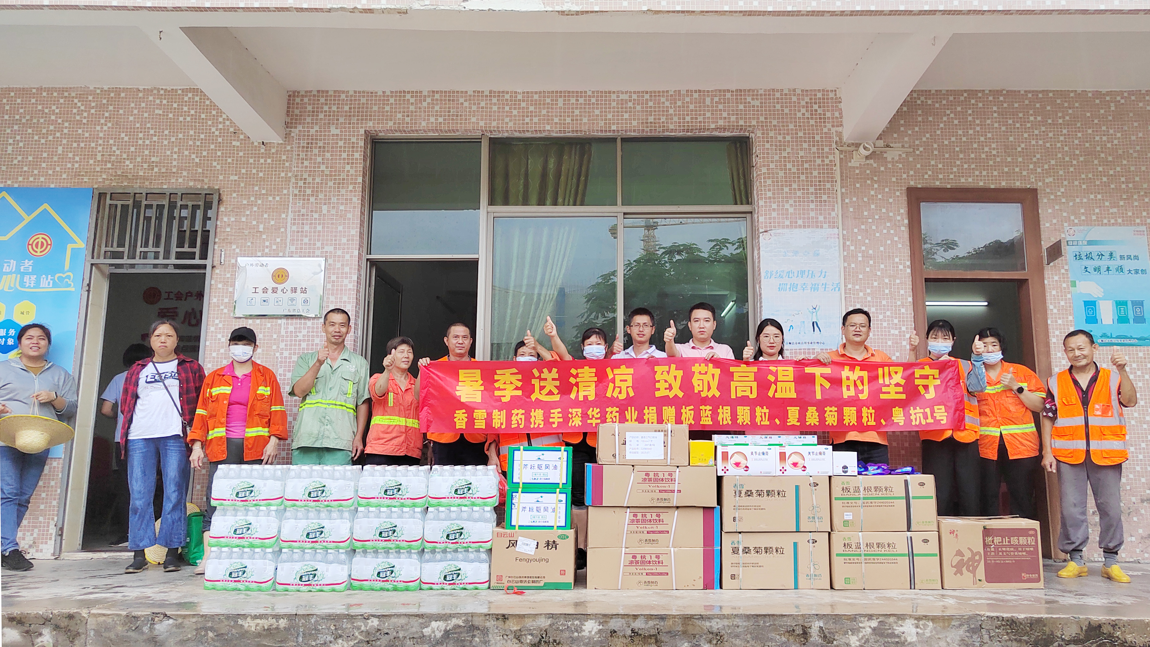 6月26日,太阳成集团tyc9728制药携手广东省凉茶博物馆、深华药业通过广东省岭南教育慈善基金会将一批板蓝根颗粒、夏桑菊颗粒、粤抗1号凉茶爱心物资送到广东省梅州市丰顺县的环卫工人手上。
