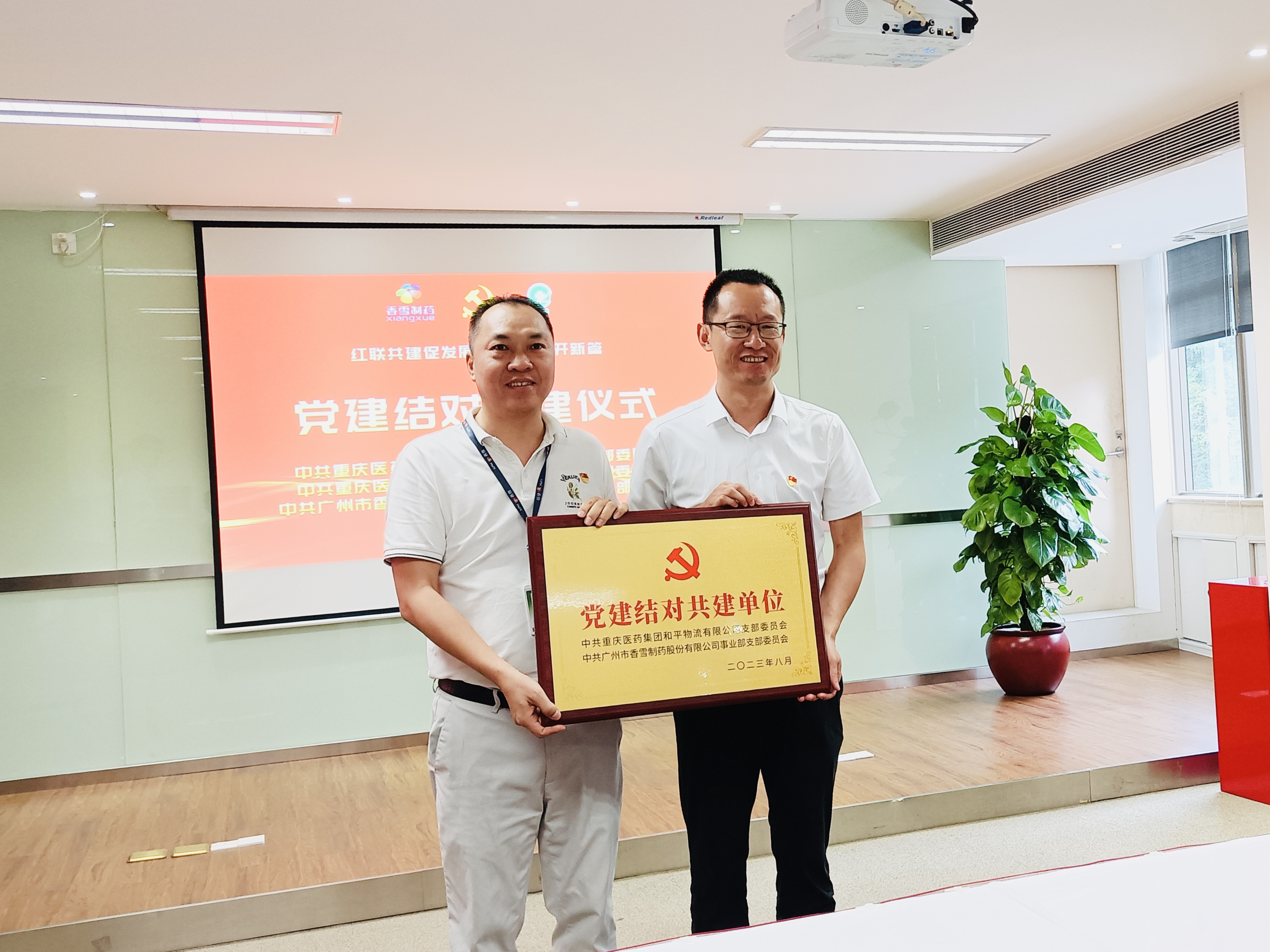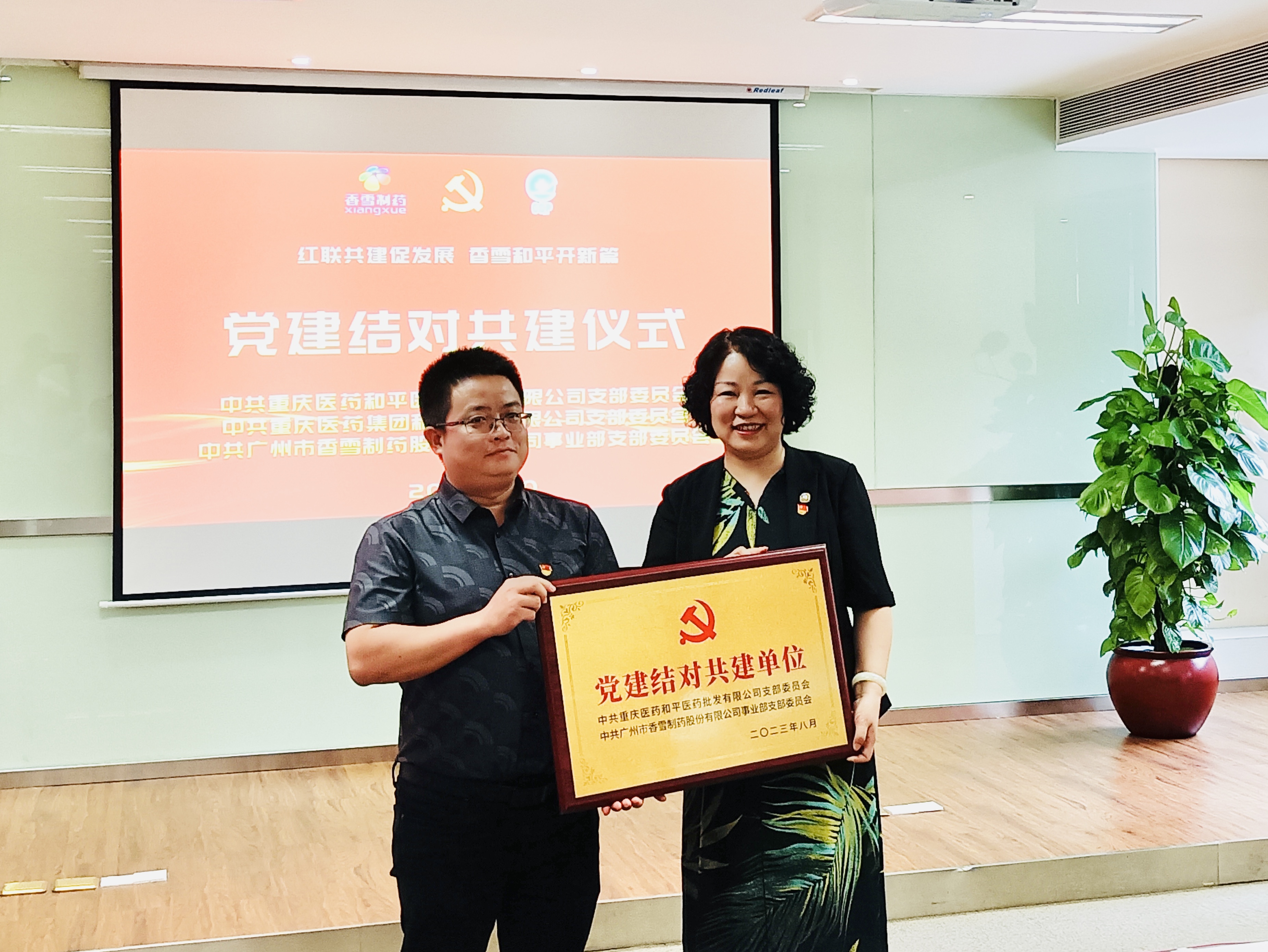 在党建结对共建仪式上,太阳成集团tyc9728制药事业部党支部分别与重庆和平批发党支部、重庆和平物流党支部互赠“党建结对共建单位”牌匾,表示今后将通过活动公办、组织共建、信息共享等方式,共同推动基层党组织党建交流共建,促进企业经营高质量发展。