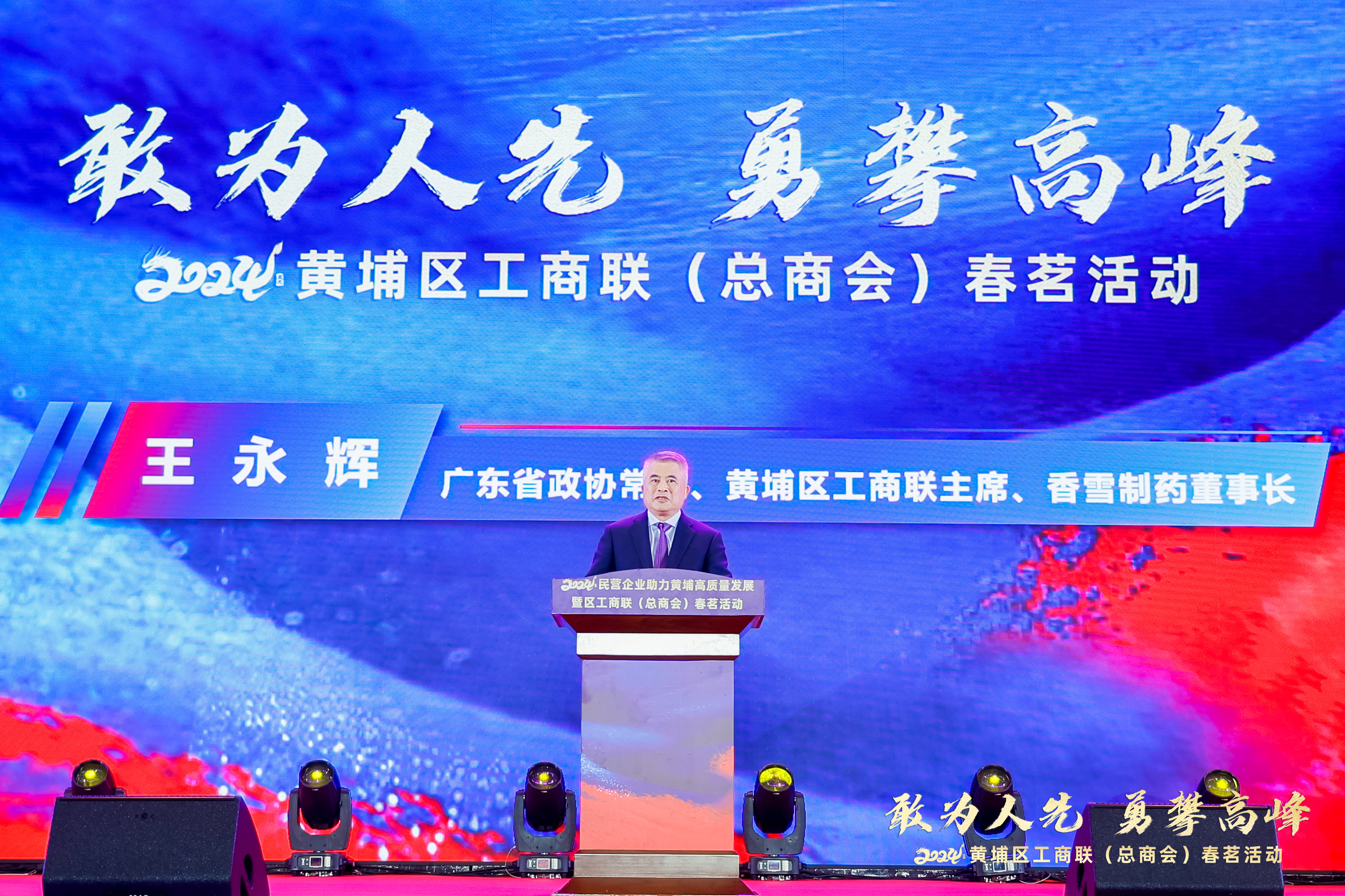 3月6日,黄埔区工商联(总商会)举办民营企业助力黄埔高质量发展暨2024年区工商联(总商会)春茗活动。活动邀请了广州开发区、黄埔区老领导;省工商联党组成员、秘书长关向明,省工商联二级巡视员王永清,市委统战部副部长、市工商联党组书记魏国华,市工商联主席梁耀铭,省委统战部、市工信局、各区工商联主席和党组书记等省市有关部门领导及嘉宾。黄埔区区长、广州开发区管委会常务副主任冼银崧,区委常委、统战部部长肖春辉,区政协副主席李彩华;区属各有关单位负责领导;广东省政协常委、黄埔区工商联主席、太阳成集团tyc9728制药董事长王永辉;区工商联二届执委会委员以及镇街商会会长约300人出席活动。