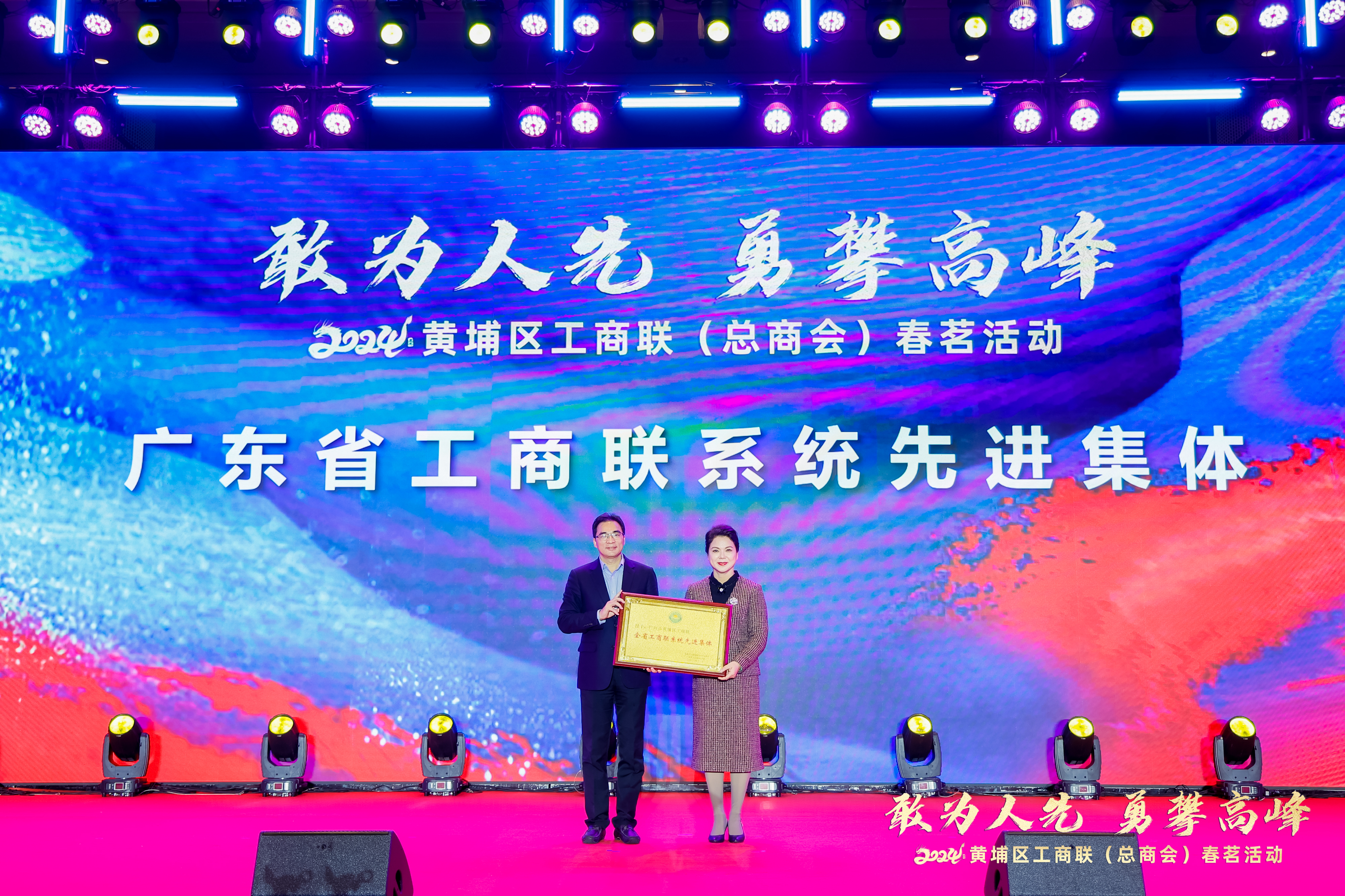 会上,播放了黄埔区工商联2023年度宣传短片。广东省工商联二级巡视员王永清为黄埔区工商联颁发广东省“五好”县级工商联牌匾。