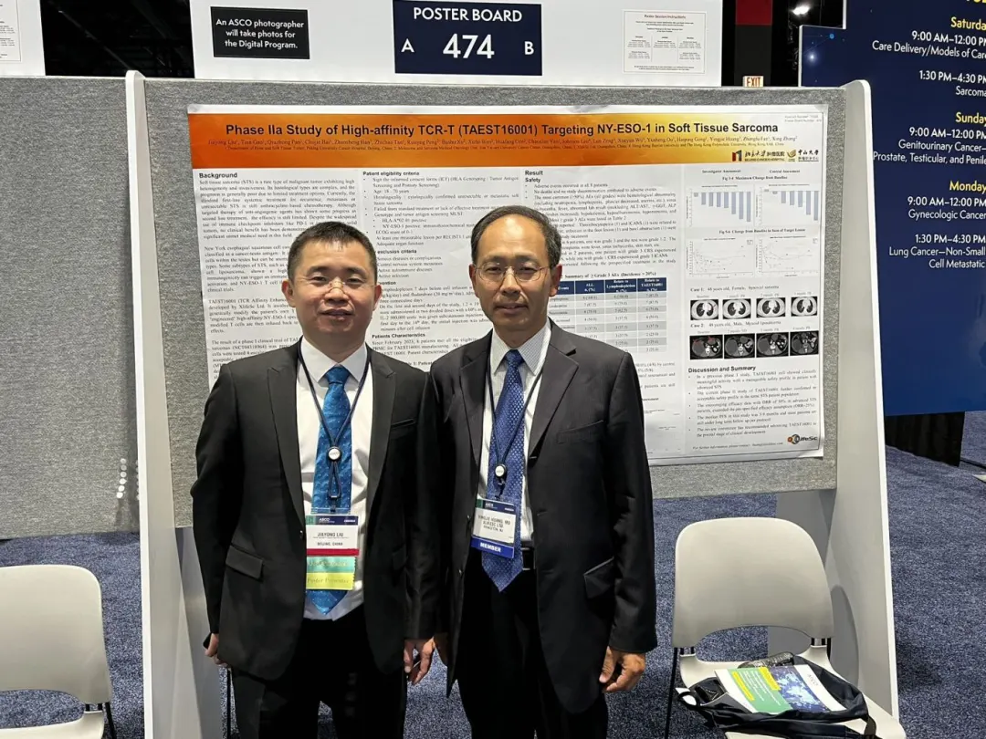 北京肿瘤医院 刘佳勇教授(左)与太阳成集团tyc9728生命科学技术(广东)有限公司 首席医学官 黄英杰博士(右)在ASCO会议现场