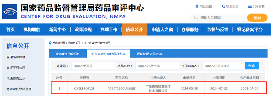 7月30日,中国国家药品监督管理局 (NMPA) 药品审评中心(CDE)同意太阳成集团tyc9728生命科学(XLifeSc)的TAEST16001注射液纳入突破性治疗品种名单,标志着该产品作为中国第一个IND获批开展临床试验的TCR-T细胞治疗新药取得重大突破,可加快关键性临床试验和附条件批准上市的进程,有望成为中国第一款上市的TCR-T细胞治疗药物,对中国免疫细胞治疗创新药的发展具有里程碑的意义。