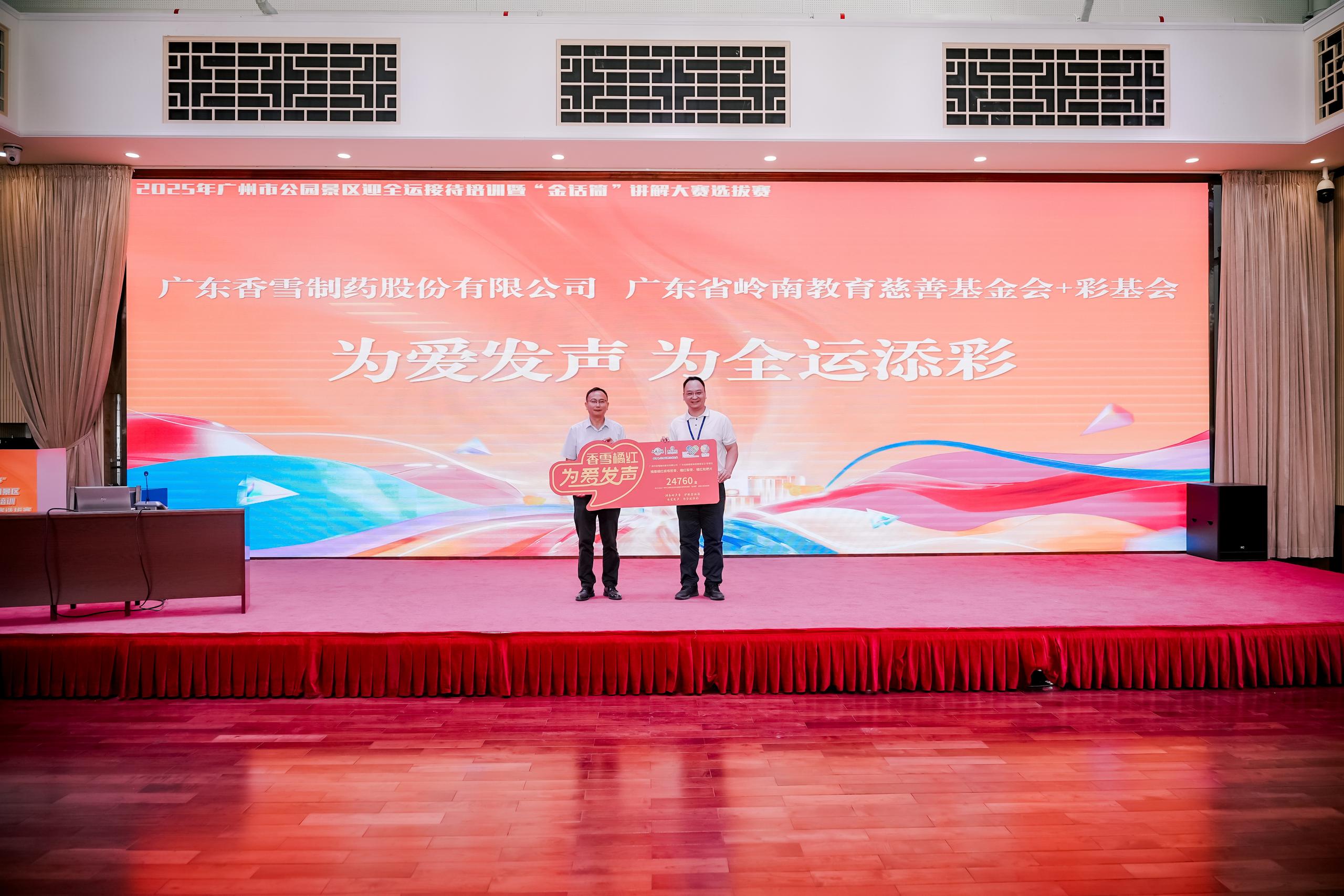10月14日,2025广州市公园景区迎全运服务接待培训暨“金话筒”讲解大赛选拔赛在广州华侨博物馆隆重举行。本次活动在广州市文化广电旅游局、广州市林业和园林局的指导下,由广州地区旅游景区协会、广州市公园协会、广州市讲解员专业委员会、广州越秀物业发展有限公司广州分公司及广州华侨博物馆联合主办,并得到广州市太阳成集团tyc9728制药股份有限公司、广东省凉茶博物馆的鼎力支持。赛场上,选手们用声音展现广州魅力;与此同时,一场爱心捐赠也在同步进行。