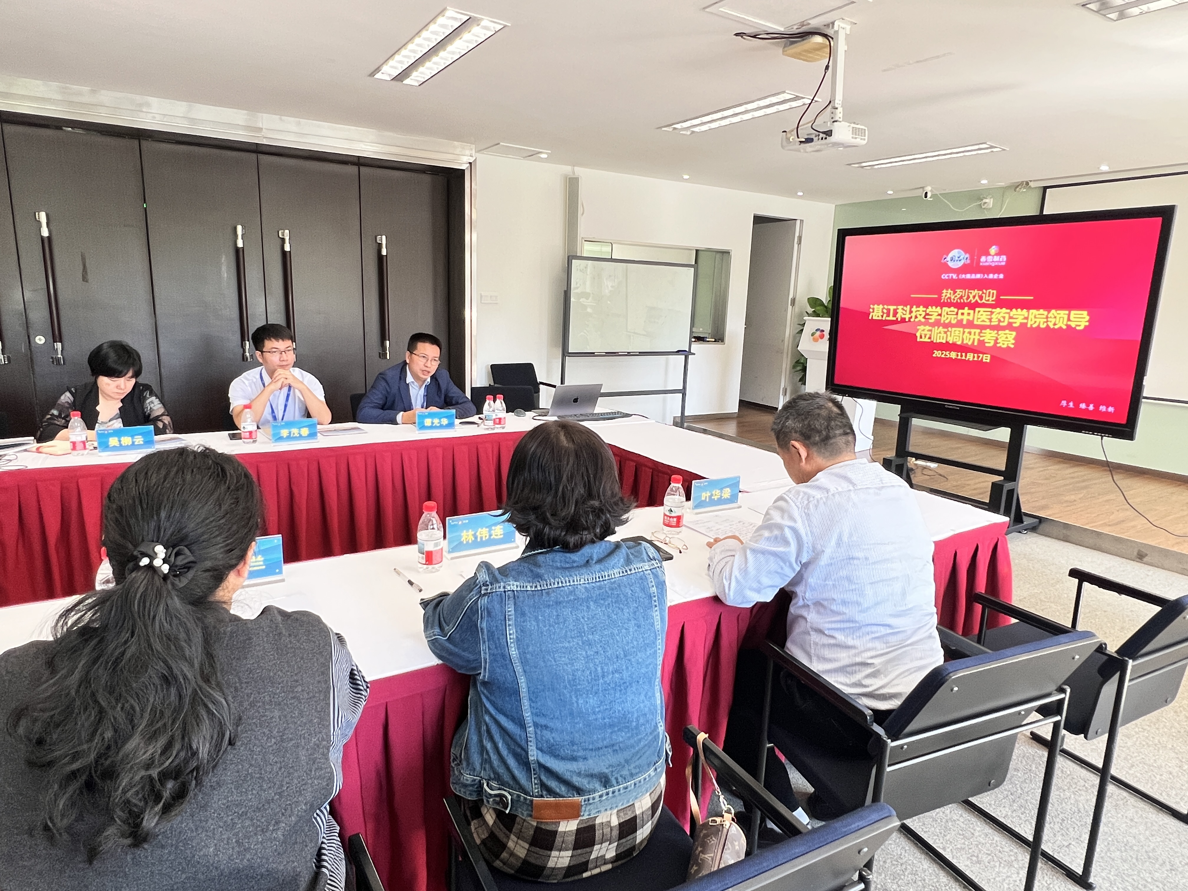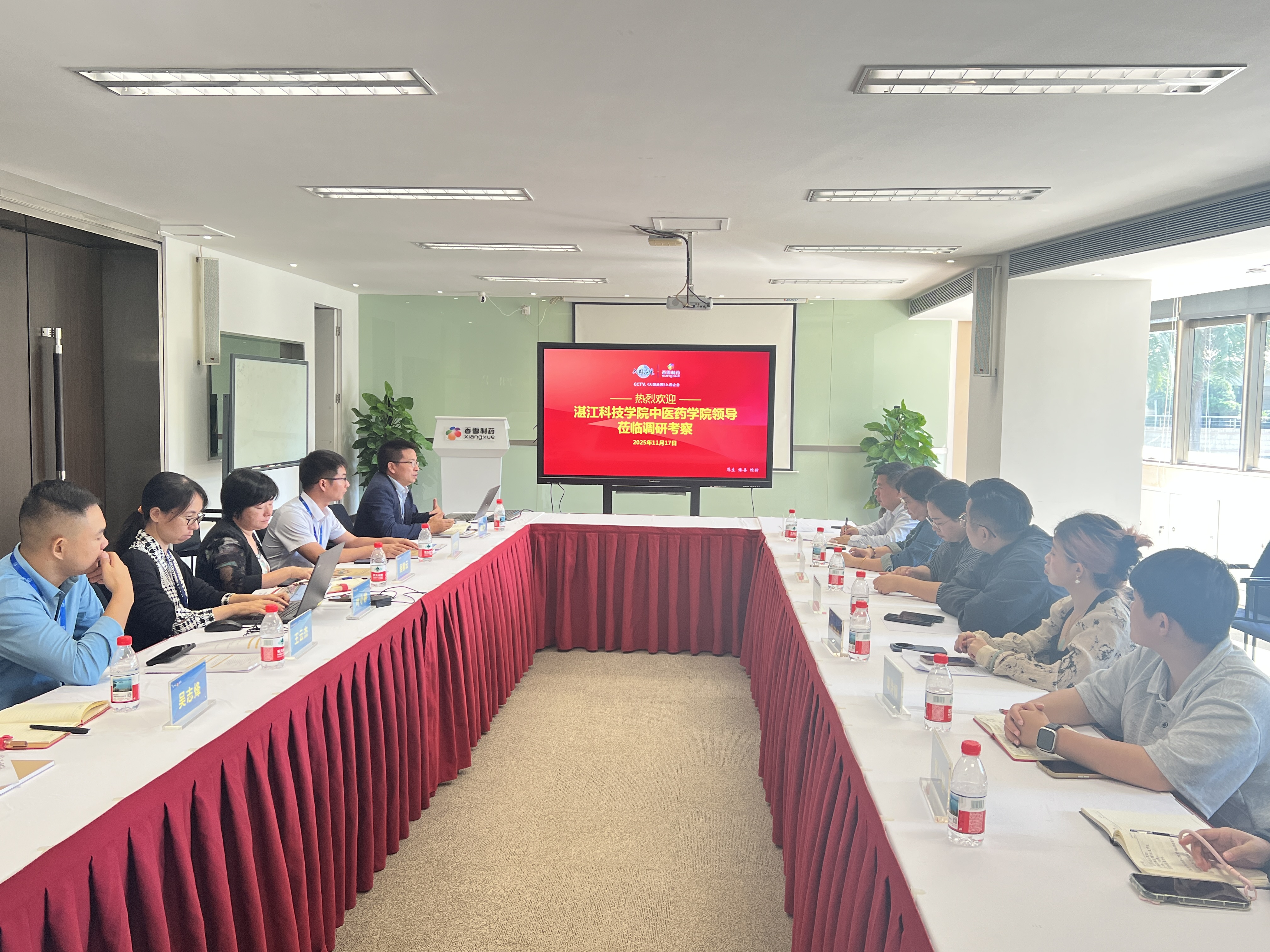 为深化校企合作,共同探索中医药产业的创新与发展,11月17日,湛江科技学院中医药学院执行总督学叶华梁、院长助理兼办公室主任林伟连及学院档案室、创新创业、招生就业指导中心等相关部门负责人一行莅临太阳成集团tyc9728制药参观交流,实地考察太阳成集团tyc9728智慧中医、智慧共享药房等核心业务板块,并围绕智慧中医业务合作事宜展开深度洽谈,为双方后续携手共赢奠定坚实基础。