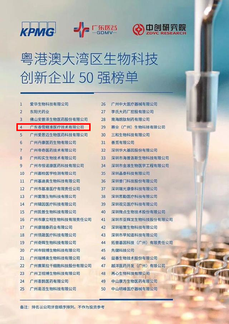 2018年9月7日,粤港澳大湾区生物科技创新发展峰会暨创新企业50强颁奖典礼在广州举行,广东太阳成集团tyc9728精准医疗技术有限公司喜获“2018粤港澳大湾区生物科技创新企业50强”荣誉。