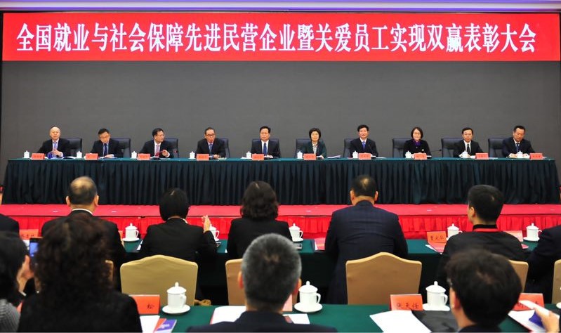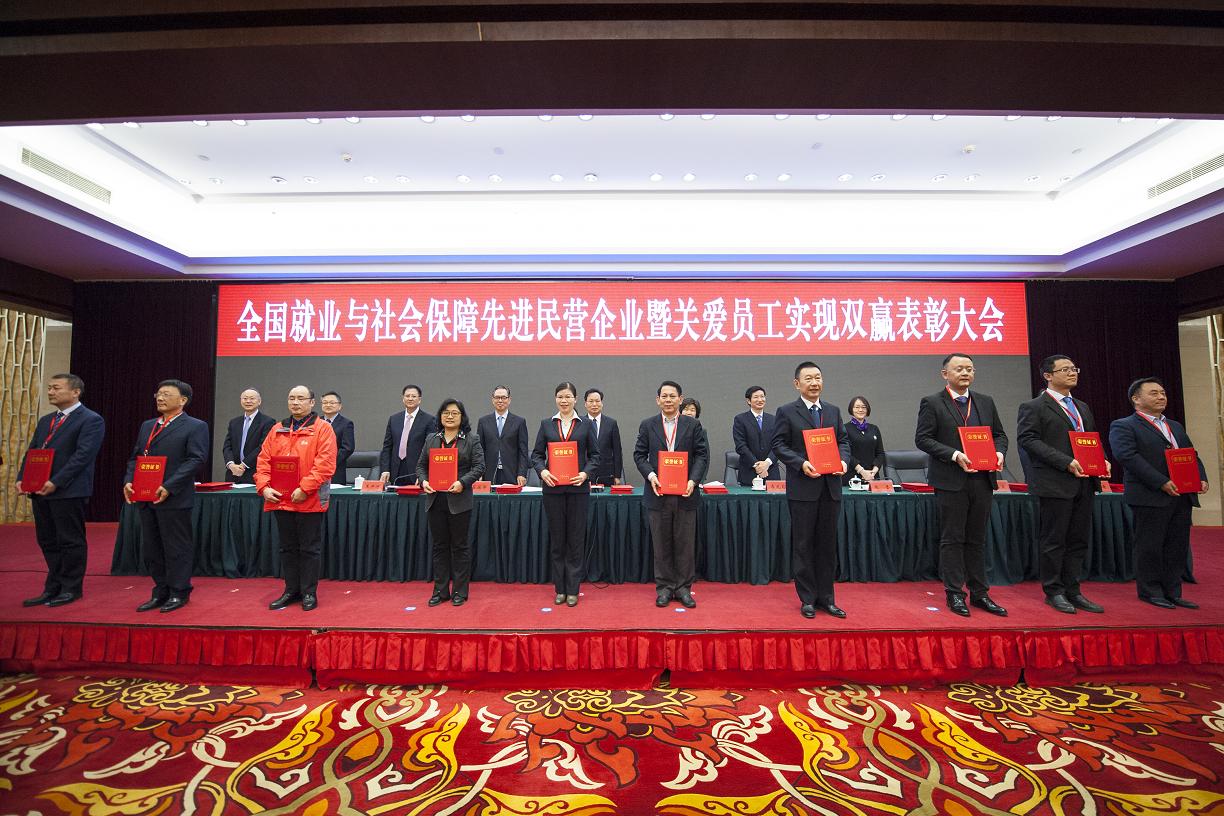 12月20日,由全国工商联、人力资源和社会保障部、中华全国总工会三方联合主办的全国就业与社会保障先进民营企业暨关爱员工实现双赢表彰大会20日在北京举行。