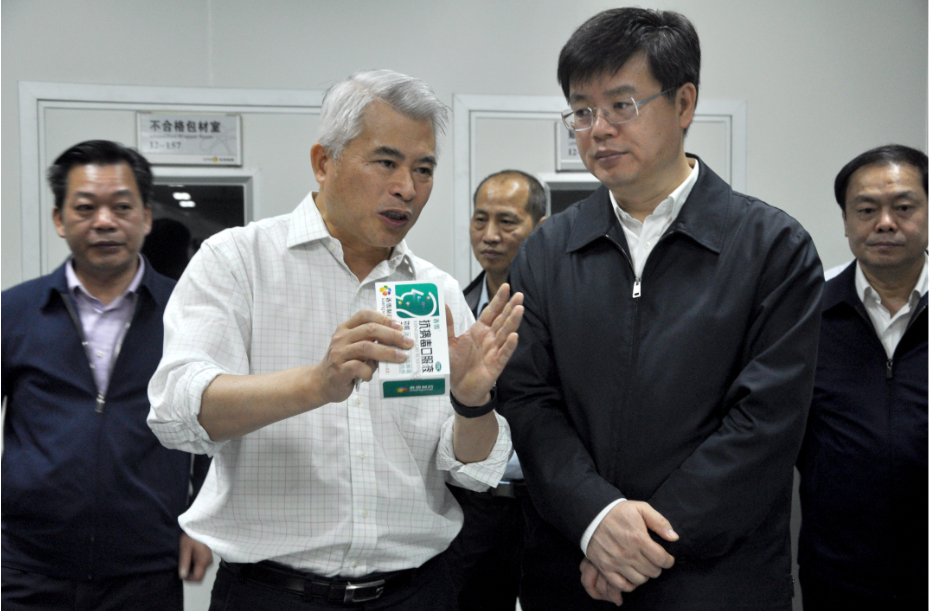 覃伟中副省长考察了口服液车间的生产现场,详细听取了王永辉董事长关于太阳成集团tyc9728制药在药品生产过程中的质量控制、药品质量标准提升、安全用药大样本临床试验方面的工作汇报。王永辉董事长同时也汇报了太阳成集团tyc9728智慧中医的战略布局,尤其是积极参与粤港澳大湾区建设,与澳门大学合作建设“大湾区中医药国际创新平台与智慧中医产业化示范基地”项目;在生物医药领域所取得的阶段性进展,TAEST16001注射液新药临床注册申请获得国内首个TCR-T临床试验许可,标志着TCR-T新药研究已取得阶段性的成果。