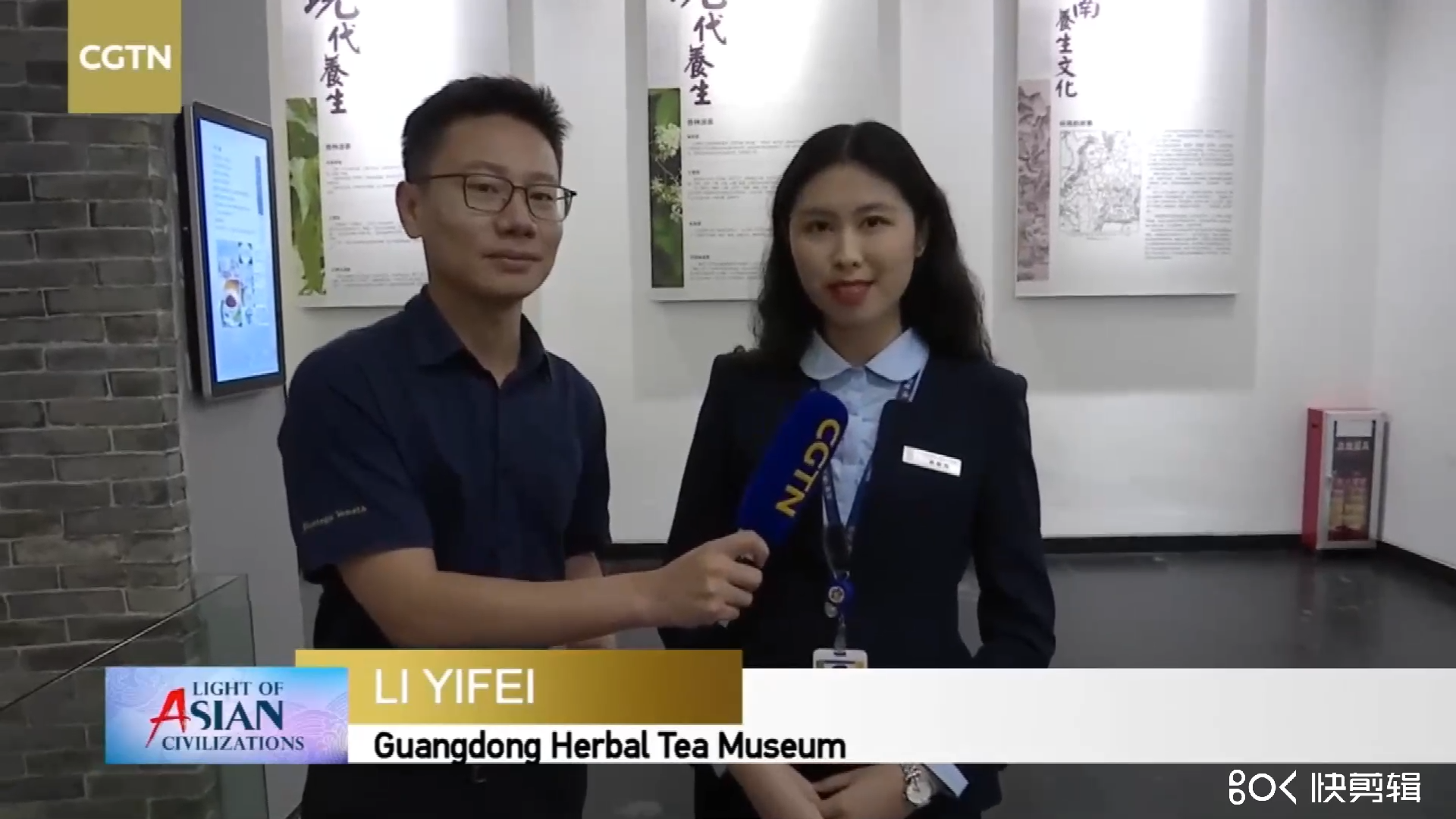 中国国际电视台CGTN特派记者李建华在凉茶博物馆直播现场