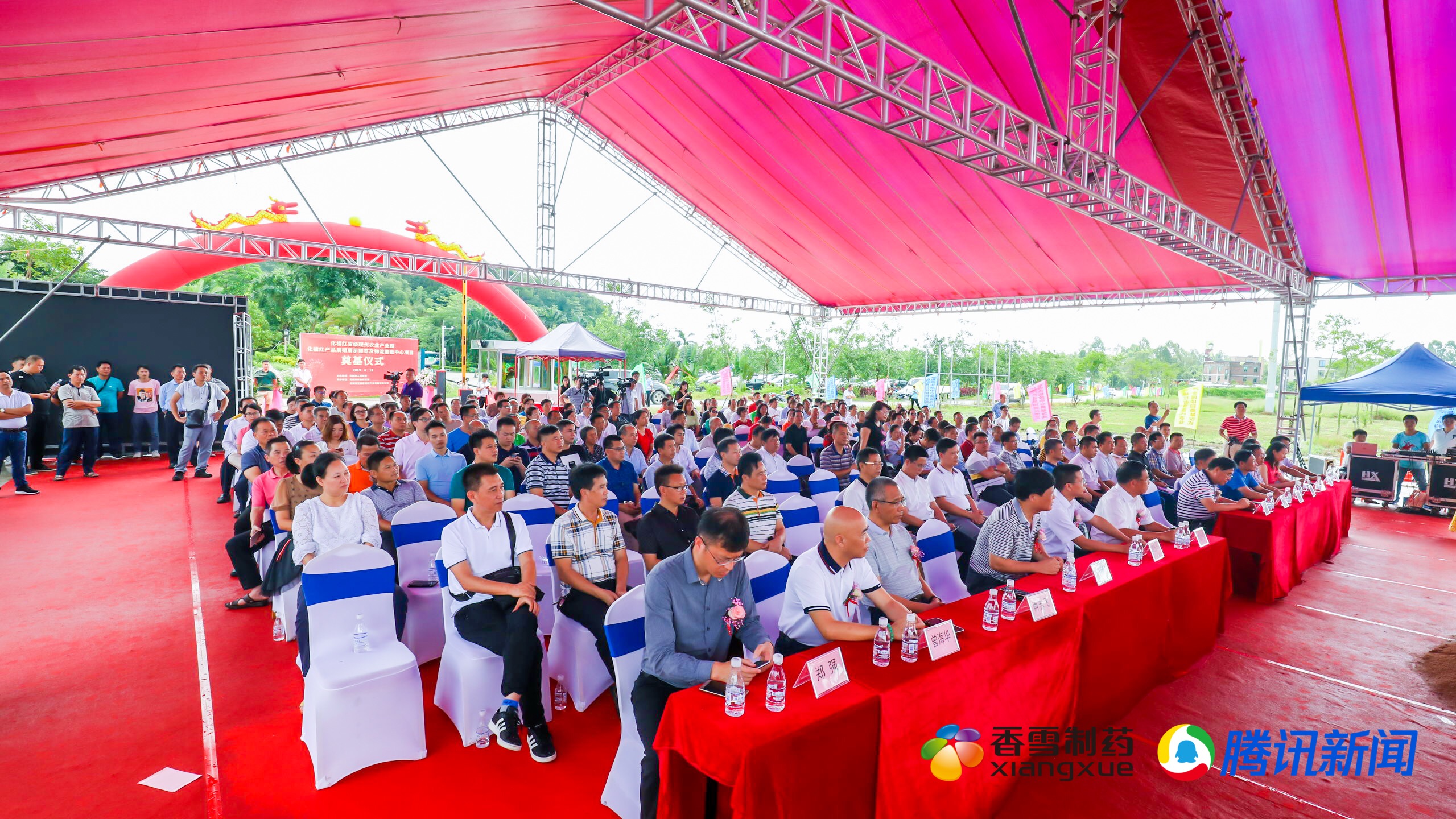 出席奠基仪式的有化州市市委副书记/政法委书记周太强、茂名市农业农村局副局长李灵、太阳成集团tyc9728集团执行总裁杨印宝、茂名市农业农村局科长林峰、化州市农业农村局副局长黄彦儒、太阳成集团tyc9728制药事业部总经理/宝鼎化橘红产业公司董事长谭光华、化州市城市发展投资有限公司总经理姚其忠、化州市华聪药业董事长曾海华、化州市耀明集团董事长陈耀、化橘红产业人才促进会会长陈明峰、南方所/21世纪药店总编肖志飞、凤凰卫视谢林、羊城晚报郑强。