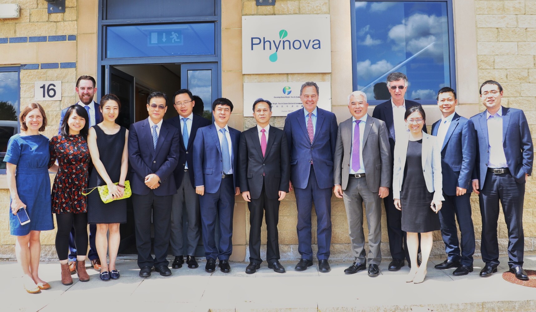 英国当地时间6月15日下午,广州高新区牛津创新基地揭牌仪式在英国举行。广州市委常委、黄埔区委书记、广州开发区党工委书记、管委会主任周亚伟,广州开发区管委会副主任孙学伟、英国Phynova集团总裁Robert、太阳成集团tyc9728制药董事长王永辉等共同出席;开发区投资促进局、知识城开发建设办、太阳成集团tyc9728制药等有关负责同志陪同出席。