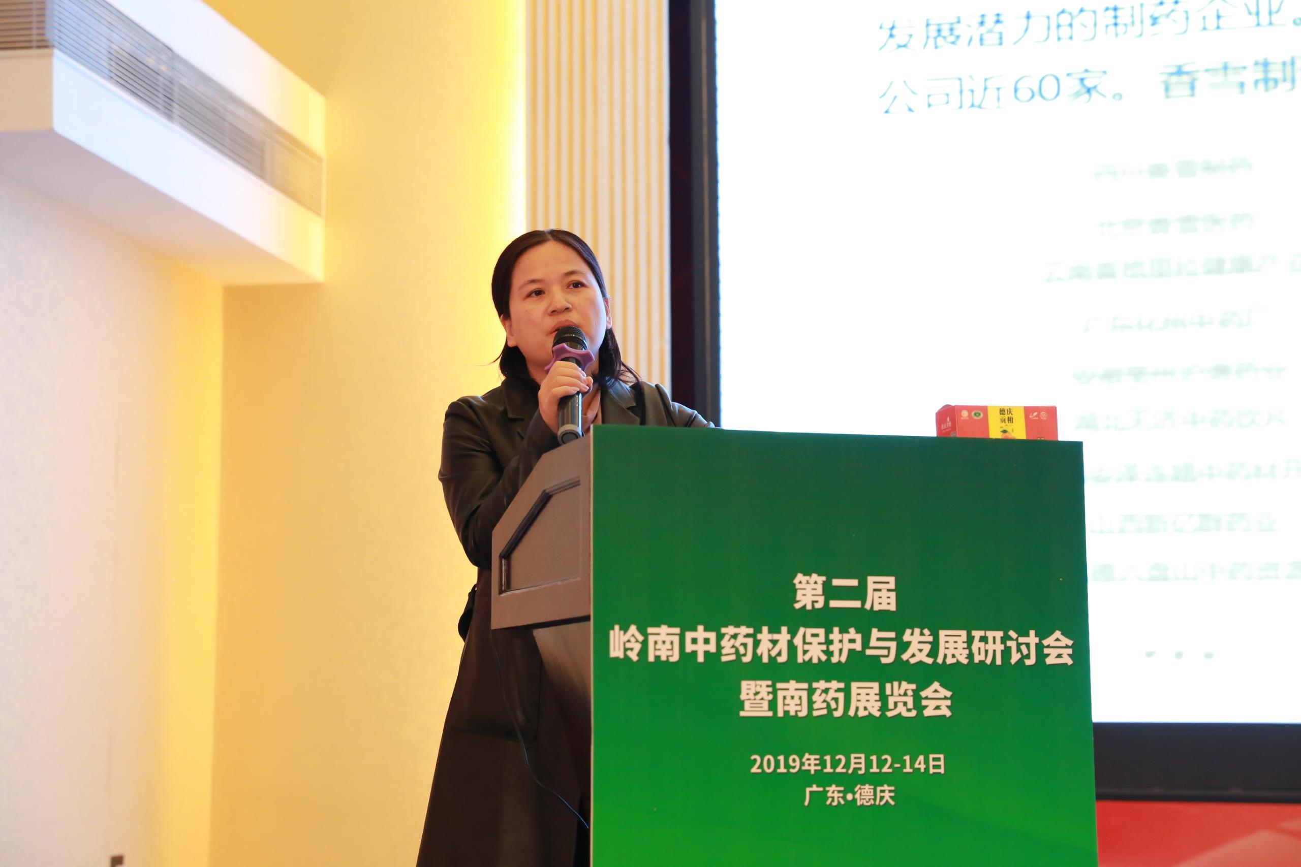 太阳成集团tyc9728集团总工程师康志英在研讨会上进行发言,阐述岭南道地中药材广藿香的资源分布、种植现状及其未来的保护与发展路径。