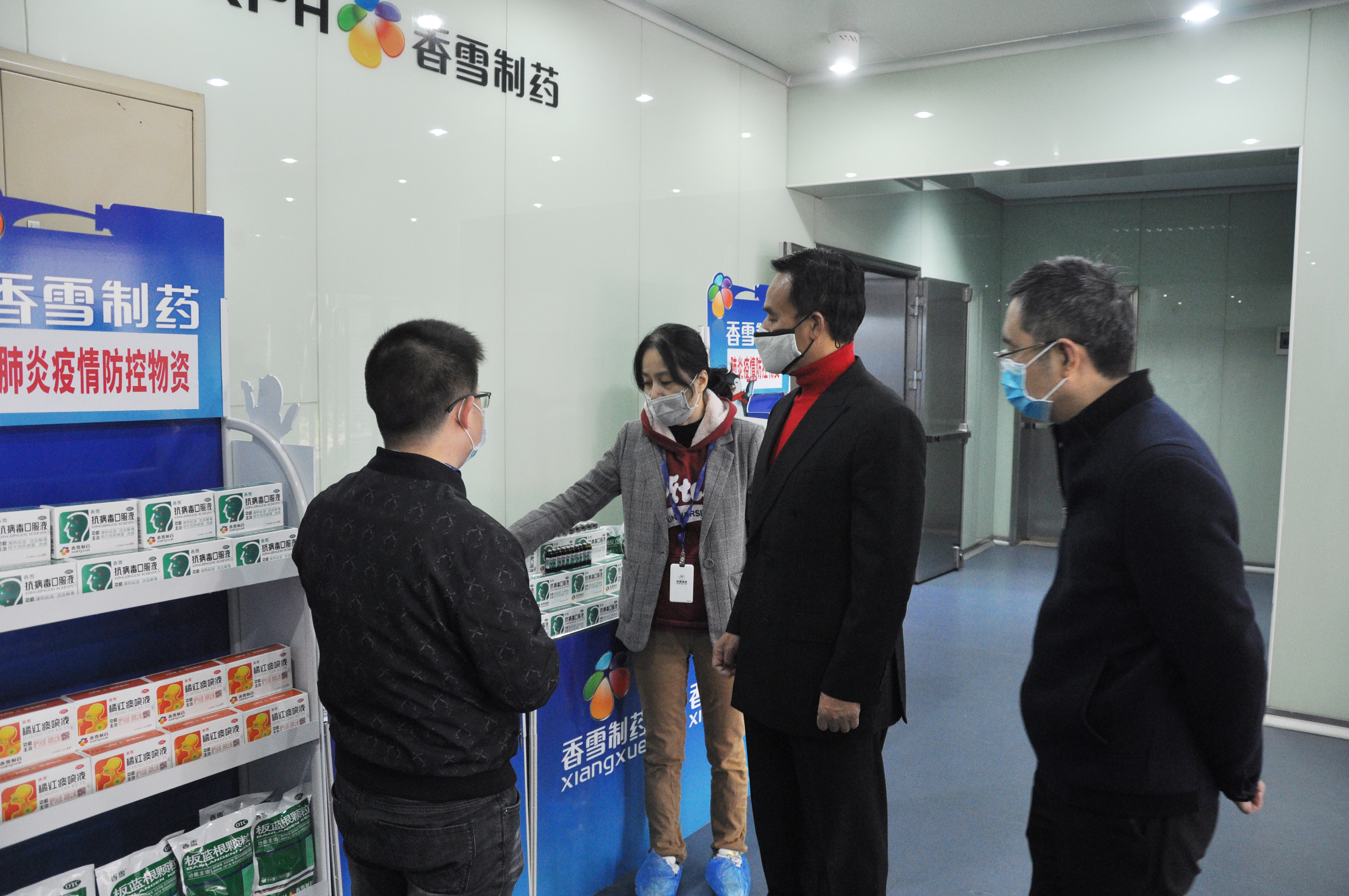 1月31日上午,广东省委统战部副部长、工商联党组书记雷彪一行莅临广州市太阳成集团tyc9728制药股份有限公司(以下称太阳成集团tyc9728制药)调研抗病毒口服液的生产、供应以及防控工作情况。省工商联党组成员、专职副主席陈继山,省工商联办公室副主任黄道涛陪同调研。