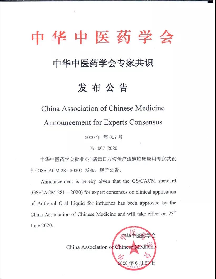 为进一步做好中医药标准化工作,总结中成药临床应用的优势与特点,全面收集专家的临床应用经验及中成药循证医学证据,形成共识,为中医临床诊疗指南制修订工作提供参考,中华中医药学会标准化办公室组织临床、药学、方法学专家对《抗病毒口服液治疗感冒临床应用专家共识》和《抗病毒口服液治疗流感临床应用专家共识》进行了函审,函审结果为通过审查,经学会办公会审批,现予以公告。