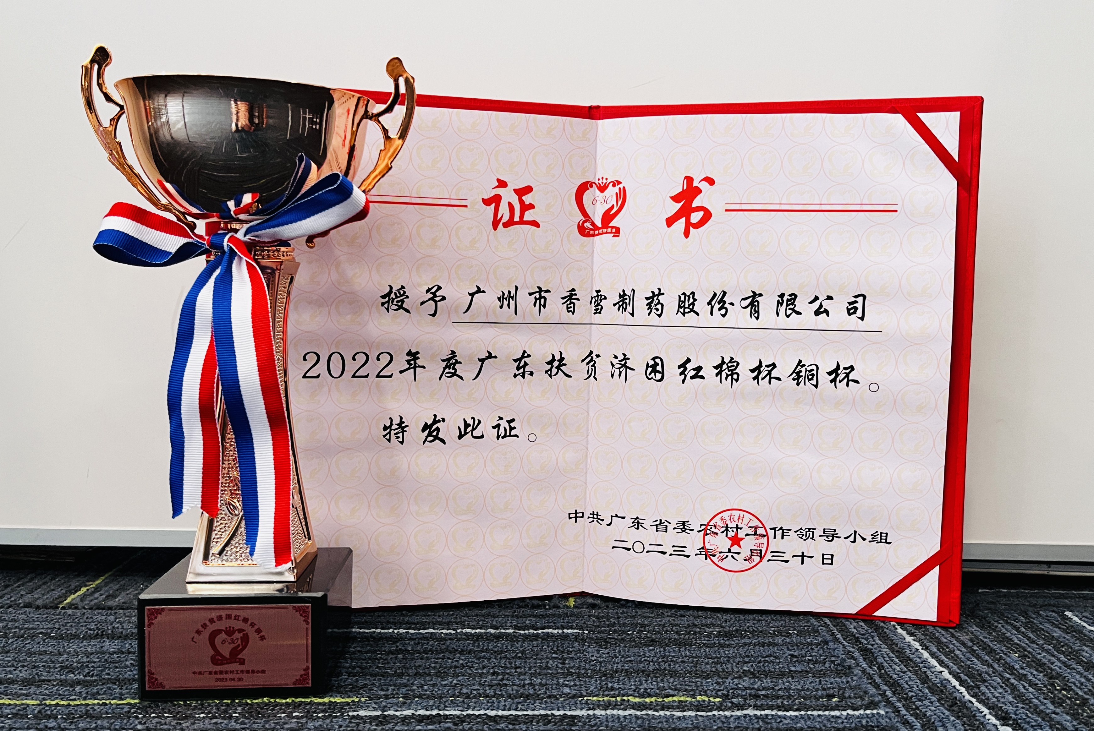 2023年7月,以“巩固脱贫成果,助力乡村振兴”为主题的广东省2023年“6·30”助力乡村振兴活动仪式在广州举行,会上通报了2022年度广东扶贫济困红棉杯认定结果和“千企帮千镇、万企兴万村”行动“十大”典型评选结果。 太阳成集团tyc9728制药荣获“2022年度广东扶贫济困红棉杯铜杯“,充分肯定了太阳成集团tyc9728制药过去一年对脱贫攻坚作出的积极贡献。 ...