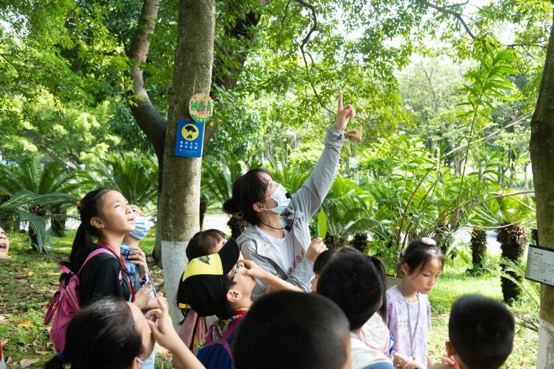 随后,讲解员带着孩子们来到了户外的芳香园。在这个种植逾300种中药材的植物园里,孩子们在老师的带领下认识了常见草药的种类与功效,接触到各类药用植物,更深入地了解了岭南凉茶的特色,引发孩子们对制药技术的思考。